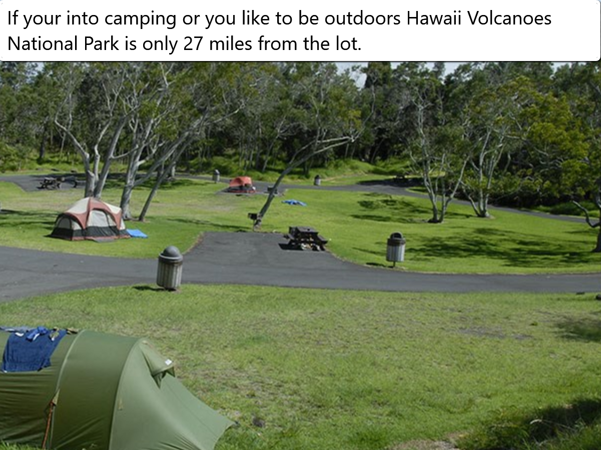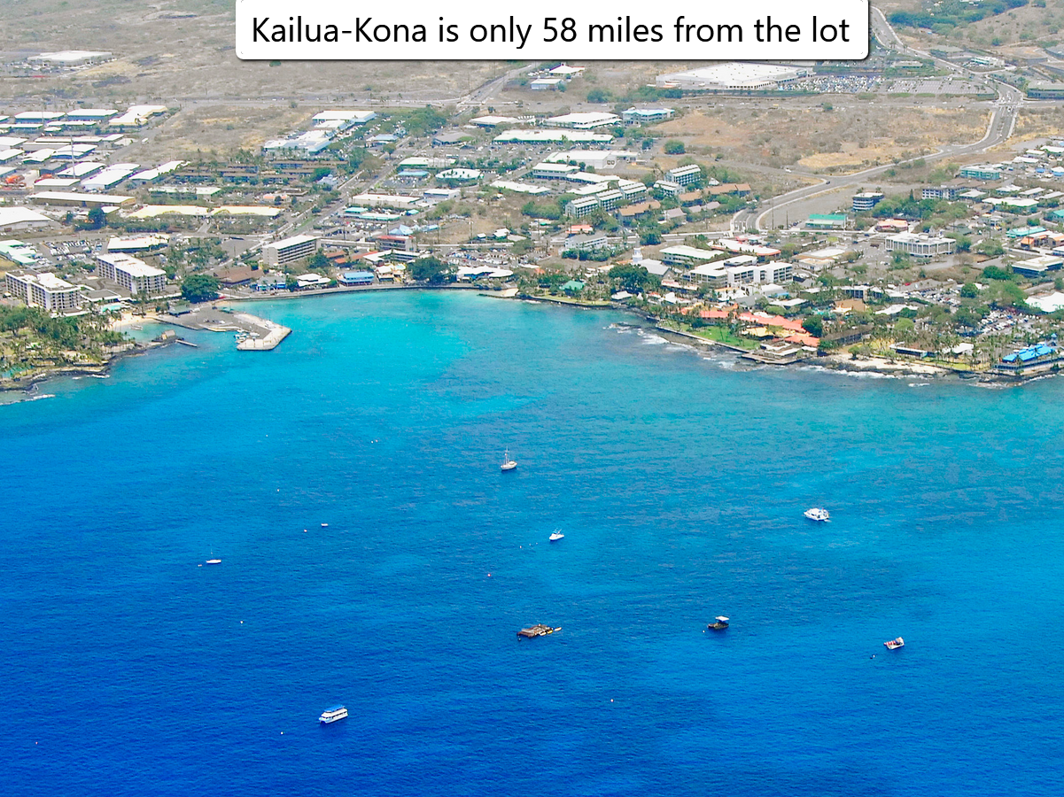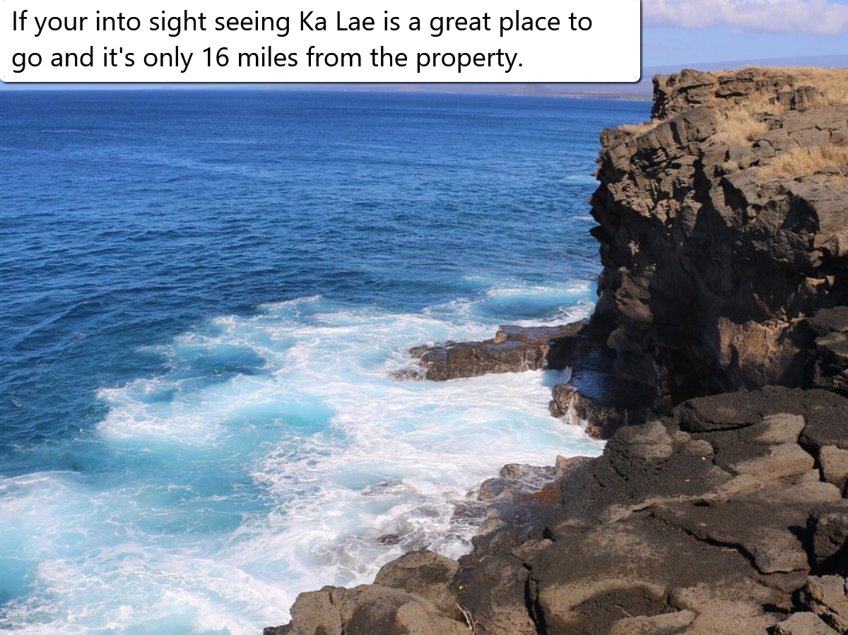 The lot is only 58 miles from Kailua-Kona. If you are into shopping or you need to pick up some food the Ocean View Saturday Market is only 14 miles away from the property. If you want to enjoy the breathtaking views and you like to be outside Ka Lae is only 16 miles away from the land. If hiking is your thing the Triple Crater Hawaii is 27 miles from the property.